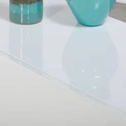 Complete your living space with the modern design of the Lewis TV stand from Buylateral. The glossy white cabinet sits on a sturdy silver metal base. This sleek TV stand with lower shelving allows you to store your remotes, books, and gaming consoles in an organized way. The Lewis TV stand will add both fashion and function to your living or family room.